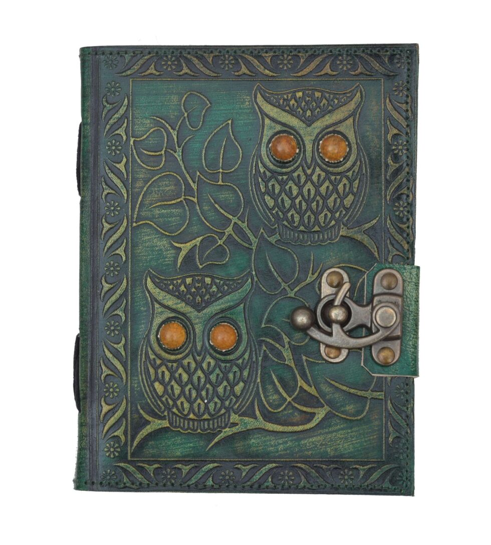 SukhStyle Twin Owl Embossed Leather Diary – Handcrafted Vintage Clasp Journal
