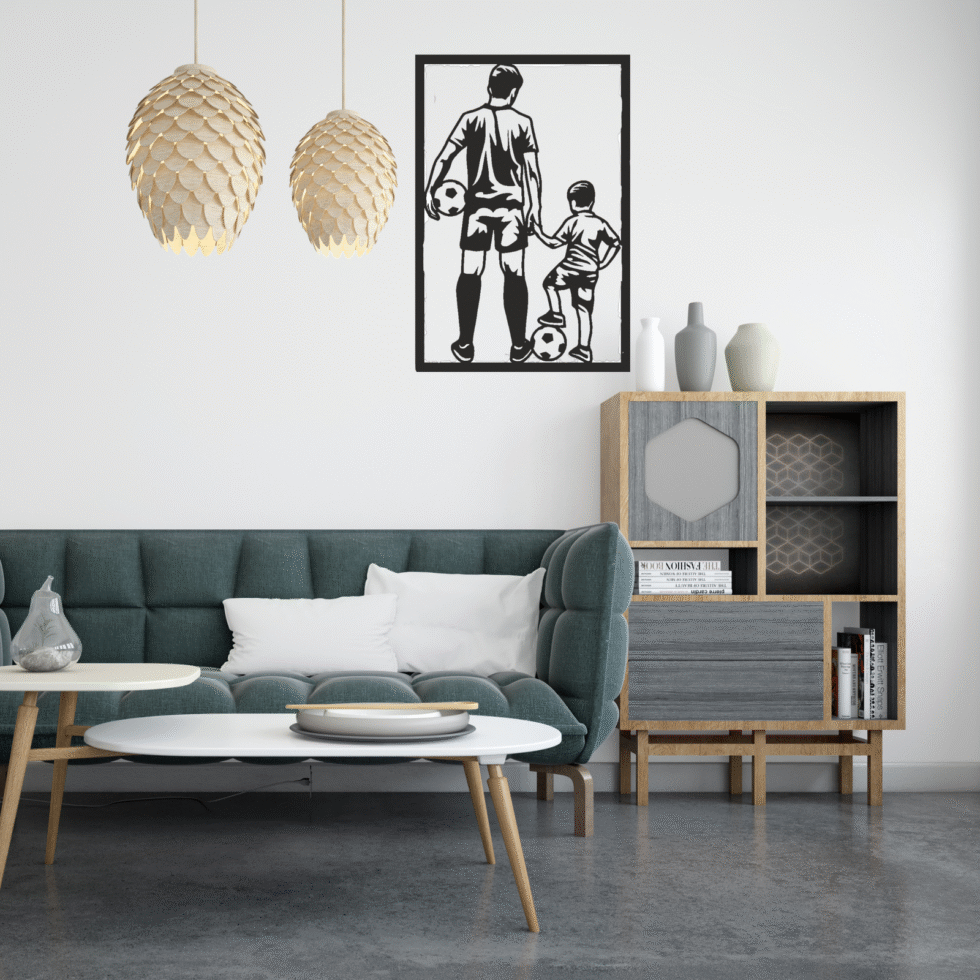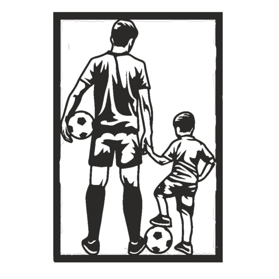 Honor the spirit of mentorship, family, and passion for sports with the Sukh Style Father & Son Football MDF Wall Art. This beautifully detailed laser-cut silhouette captures a touching moment between a father and his child, both holding footballs, symbolizing guidance, dreams, and togetherness.